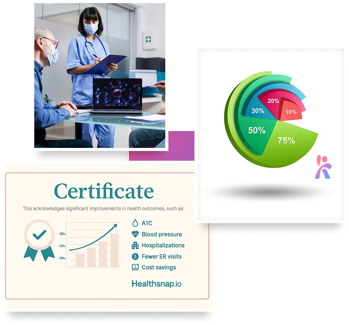 Beyond improving healthcare delivery, KARE Clinicals offers financial benefits by participating in CMS reimbursement programs. These programs generate revenue for partners while also contributing to improved HEDIS and STAR ratings, reducing hospitalizations, and benefiting both providers and patients financially.